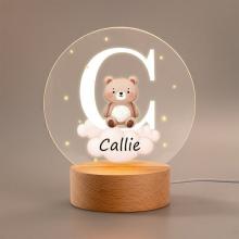 Veilleuse LED Personnalisée avec Initiale et Nom Décoration de Chambre avec Socle en Bois