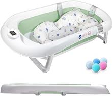 Baignoire Bébé Pliable 3 Étapes Avec Coussin de Bain Antidérapant/Baignoire avec Thermometre Pour controle de la Température de l'Eau/De La Naissance à 2 ans / 5 balles en Plastique offerte (Coussin, VERT) : Amazon.com.be: Bébé et Puériculture