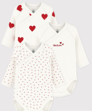 Lot de 3 bodies croisés cœur rouge manches longues bébé de chez Petit Bateau.