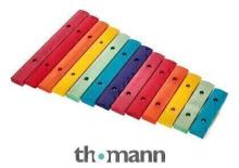 Xylophone Model 11208, 13 sound plates made of maple, Stained in Boomwhackers colours, Fine tuned, Tones: b'' - g'''', Frame made of spruce wood, In gift box, Incl. 2 mallets