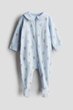 Pyjama en jersey de coton très doux avec imprimé all-over. Modèle avec protège-menton anti-irritations au-dessus de la fermeture à glissière se prolongeant le long d'une jambe devant. Manches longues terminées par poignet rapporté et jambes longues terminées par bord-côte.