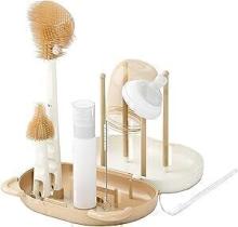 HOEREV Ensemble de brosses à biberons portables sans BPA comprenant une brosse à tétine, une brosse à paille, un égouttoir et une boîte portable, beige : Amazon.com.be: Bébé et Puériculture