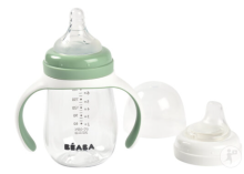 Béaba Biberon/Tasse D'Apprentissage 2en1 Anti-Fuite Poignées Amovibles 210ml Vert Sauge