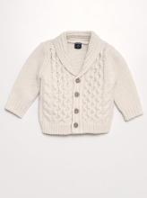 Optez pour le confort absolu pour votre bébé avec notre joli gilet doux et chaud. - Gilet en maille tricot - Maille effet torsadée - Col châle - Manches longues - Ouverture boutonnée - Finitions en bords côtes