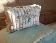 Ici une trousse de toilette bien pratique pour mettre mes petits brols :)
