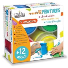 Mes pemières peintures de chez Crea'Lign, ce sont 4 pots de peinture tout spécialement conçue pour les tout-petits dès 1 an. 4 couleurs ultra-lavables, qui ne coulent pas et sont prêtes à l'emploi