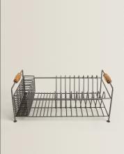 Égouttoir en fer avec poignées en bois d’acacia.
