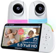 Babysense - Moniteur bébé Full HD écran partagé - Avec 2 caméras - Veilleuse en 6 couleurs - Bruit et machine à lumière - Batterie de 20 heures - Connexion sécurisée sans WiFi : Amazon.fr: Bébé et Puériculture