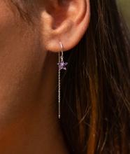 Boucles d'oreilles chaîne et fleur Améthyste en argent 925 pour femme. Craquez pour nos boucles pendantes en argent 925 et plaqué or à accumuler.