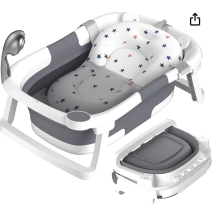 Baignoire Bébé Pliable, La Baignoire Enfant Convient aux Nouveau-Nés aux Tout-Petits et Dispose d'un Tapis Antidérapant et de Trous de Drainage.