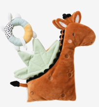 En avant les découvertes grâce à ce livre d'éveil rempli de surprises ! Sa forme girafe et sa matière velours seront très appréciées de votre tout petit ! 6 pages d'activités pour développer les sens des enfants et