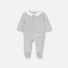 Comfortabel setje van velours baby - Jacadi licht gemêleerd grijs | Jacadi Paris
