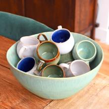 Saladier L en grès artisanal, compatible lave-vaisselle et four. Livraison sans casse. Chaque pièce est unique.