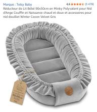 Réducteur de Lit Bébé 90x50cm en Minky Polyvalent pour Nid d'Ange Couffin et Naissance chaud et doux et accessoires pour nid douillet Winter Cocon Velvet Gris