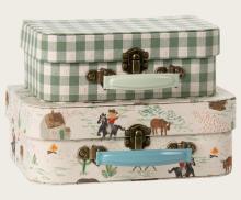 Ensemble de valises idéal pour ranger vos objets préférés. Chaque valise est recouverte d'un tissu Maileg unique et possède des poignées métalliques colorées. Ce lot de 2 pièces est parfait pour à la fois ranger et transporter vos jouets préférés.