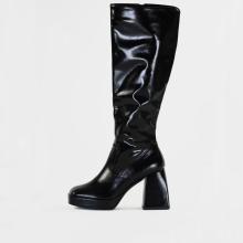 Bottes à plateforme. Système de fermeture avec un zip intérieur. Bout carré et talon large géométrique. Hauteur de talon : 9.5 cm Indication taille du tour de mollet (mesures prises au plus large à l'intérieur de la tige) : pointure 36 : 34 cm pointure 37 : 35 cm pointure 38 : 36 cm pointure 39 : 37 cm pointure 40 : 38