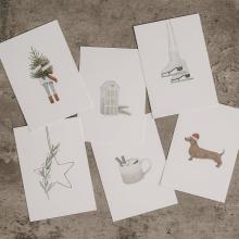 Découvrez notre ensemble de cartes magique Christmas time avec 6 cartes aquarelles dessinées à la main. Parfait pour des vÅux de Noël élégants et des invitations.