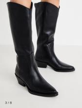 Botte haute noir chiques avec un petit talon ( n’importe quelle marque) mais il y en à chez Zara ou Zalando
