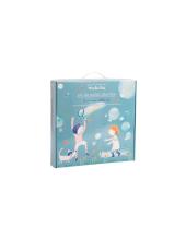 Découvrez le set de bulles géantes de la collection Aujourd'hui c'est mercredi de Moulin Roty. Le coffret contient 5 anneaux différents et une ficelle pour faire de magnifiques bulles de savon de toutes les tailles et de toutes les formes.
