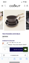 Pierre & Flo - Trio poêles et casserole avec poignées amovibles (noir, gris ou moka)
