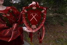 🌹⚔️🛡 Shield Backapack 🛡⚔️🌹 PREORDER : This is a preorder item! The estimated delivery date is January 2025 ♡ Keep in mind that this is just an estimation, delays can happen ♡ *Preorder perk? You get discounted prices ✨️ This shiny shield bag is made of a luxurious velvet fabric and features thorns + roses embroider