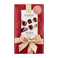 Offrez le Ballotin Timeless Masterpieces Noël, rempli de 42 pralines Neuhaus emblématiques. Un cadeau idéal, emballé dans un élégant papier rouge et or.