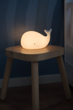Whale Night Light, fonctionne avec 3 piles AAA. Elle change de couleur par une petite tape ! Avec fonction minuteur. S’éteint automatiquement après 1-2 heures si personne ne la touche. Hauteur : 9,5 cm. Largeur : 16,7 cm. Profondeur : 10,9 cm.