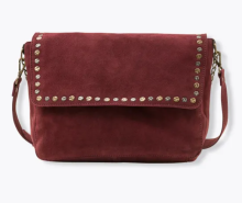 Alerte-mode ! Vite, on (s')offre ce beau sac en cuir suédé ! On le porte à la main ou sur l'épaule. Il est équipé d'une anse en cuir suédé et maillons métal couleur dorée ainsi que d'une bandoulière en cuir suédé ajustable (amovible). Pour cultiver son sens du rock, il est animé de clous en métal vieilli sur le rabat. 2 compartiments et 1 poche à l'intérieur. Doublure. Taille unique. Idée-cadeau.