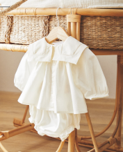 Ensemble pour bébé composé d’une chemise et d’un bloomer avec broderie.