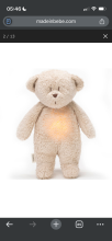 Découvrez l'ours magique Sable de la marque Moonie. L'ours magique offrira à votre enfant des nuits de rêve. Cette nouvelle veilleuse en coton biologique diffuse à la fois un son apaisant et une lumière do...