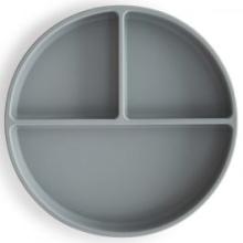 Avec l'assiette à compartiments en silicone avec ventouse de la marque Mushie, votre enfant pourra bientôt se mettre à table avec toute la famille.