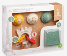 Laissez vous séduire par le coffret d'éveil des sens de la marque Vulli. Dans ce coffret, vous trouverez un anneau de dentition, 3 balles musicales, un anneau senteur et un cube avec différentes textures....
