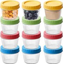Lot de 12 récipients alimentaires en verre hermétiques Bimbi, 360 ml, pots hermétiques de stockage pour aliments pour bébés avec anneau d'étanchéité pour lave-vaisselle, congélateur et micro-ondes