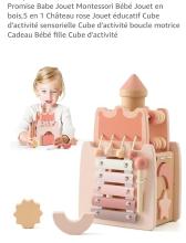 Promise Babe Montessori Baby Toy Wooden Toy, 5 in 1 Pink Castle Educational Toy Sensory Activity Cube Activity Cube Motor Loop Gift Baby Girl Activity Cube : Amazon.com.be: Baby Products