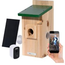 dobar® Nichoir Eazy avec caméra WiFi et panneau solaire - Observation des oiseaux avec aide au nidification en bois et application - Diamètre du trou d'entrée : 30 mm - Vert : Amazon.com.be: Jardin