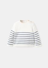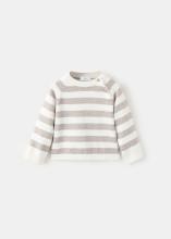 Tissu 100% coton. Maille fine. Design droit. Motif à rayures. Col rond. Manche longue. Fermeture à boutons sur l'épaule