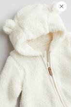 Combi-pilote en tissu peluche doux avec capuche agrémentée d'oreilles appliquées. Modèle avec fermeture à glissière surmontée d'un protège-menton anti-irritations devant. Bord dépliable en bas de manche pour garder les mains au chaud et pieds fermés. Doublure en jersey.