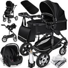 KESSER® Poussette combinée 3en1 set nacelle poussette sport siège bébé coque pneus caoutchouc amortisseurs incl. sac à langer, habillage pluie & moustiquaire ECE R129 jusqu'à 20kg noir/noir : Amazon.com.be: Bébé et Puériculture