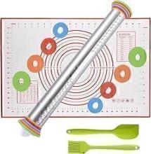 Rouleau à pâtisserie - Rouleau à pâtisserie antiadhésif en acier inoxydable de 17'' avec anneaux d'épaisseur ajustable pour la cuisson de biscuits Chapati Fondant Pâte Pâtisserie Pizza Pie Crust : Amazon.fr: Cuisine et Maison
