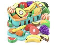 Jouets alimentaires pour enfants, accessoires de cuisine, faux fruits/légumes avec panier de rangement, planche en plastique et couteau, cadeaux d'anniversaire/jouet éducatif pour tout-petits : Amazon.com.be: Jouets