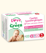Les couches écologiques Love & Green, certifiées Ecolabel, sont plus saines et plus naturelles. T1