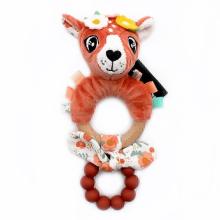 L'anneau de dentition en silicone Mélimélos la biche des Déglingos se compose d'un anneau en bois pour la préhension et d'un anneau de dentition en silicone pour soulager les poussées dentaires de bébé. Une petite peluche toute douce recouvre l'anneau en bois pour l'éveil de bébé. Idéal pour un cadeau naissance.