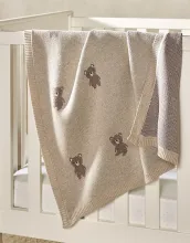 Animal-themed design • Pure organic cotton • Decorated with bears all over • Looks great in neutral nurseries Our teddy bear blanket is made with pure organic cotton for a delicate feel against babies’ skin. In a neutral biscuit marl shade, it’s decorated with small knitted teddies all-over, with one embroidered bear in the centre. A great gift for new, they will use it for years to come.