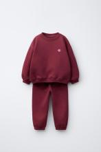 Ensemble deux pièces. Sweat à col rond et manches longues. Finitions côtelées. Détail brodé à contraste sur la poitrine. Pantalon type jogger avec taille élastique et cordons ajustables à l'avant. Bas avec finition élastique. Intérieur gratté, chaud et doux. Tissu 70% coton.