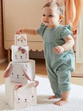 A la fois doudous et jouets, ces adorables cubes se touchent, se mâchouillent, s'empilent, s'écroulent... pour offrir aux tout petits de tendres moments de découvertes !