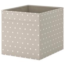 DRÖNA Rangement tissu, beige, à pois, 33x38x33 cm. Cette boîte en tissu de velours apporte une touche de douceur à votre rangement, qu'il soit dans votre dressing ou dans le salon. Idéale pour les étagères KALLAX.