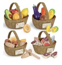 Ensemble de nourriture en bois + panier + étiquettes
