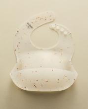 Bavoir en silicone pour enfant à motif lunes et étoiles en forme de confettis.