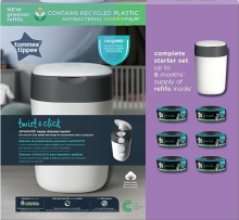 Tommee Tippee Poubelle à Couches Avancée Twist & Click Starter-Set, 1x Lot de 6 Recharges avec un film multicouche antibactérien, Blanc (l'emballage peut varier) : Amazon.com.be: Bébé et Puériculture