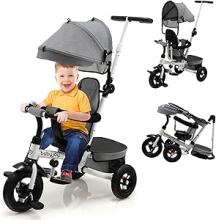 4 en 1 Tricycle Bébé Évolutif 1-5 Ans avec Auvent & Poignée Réglables, Draisienne Évolutif Pliable avec Siège Réversible & Pédale Pliable, Roues avec Frein et Porte-gobelet(Gris) : Amazon.com.be: Jouets